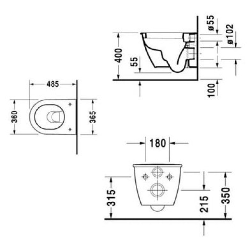 Схема с размерами подвесного унитаза Duravit Darling New (2549090000)