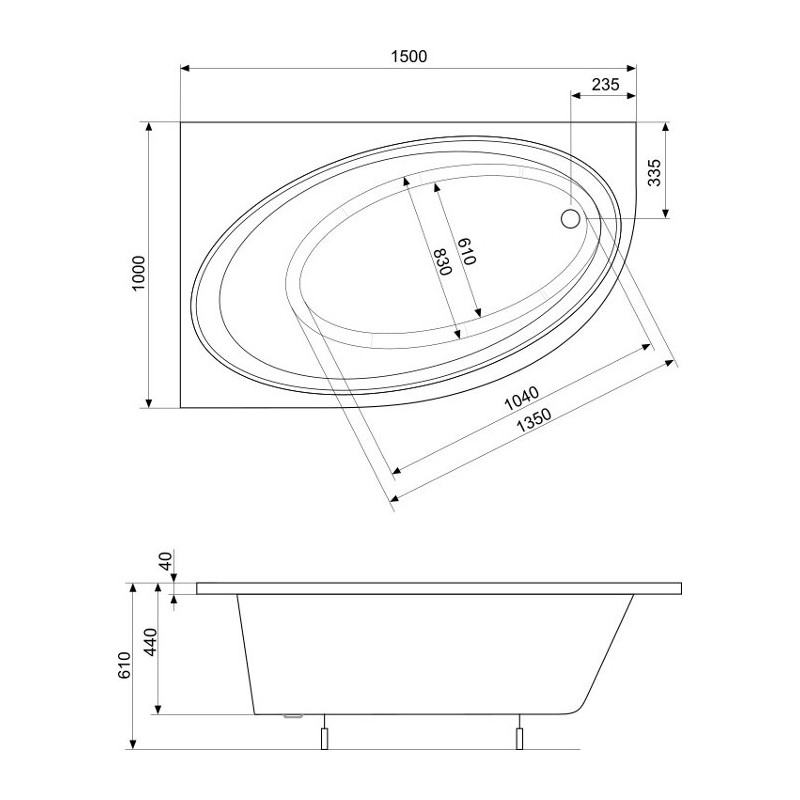 A24T201000 Ванна Orbita 1500x1000 ліва + ніжки код 0665...