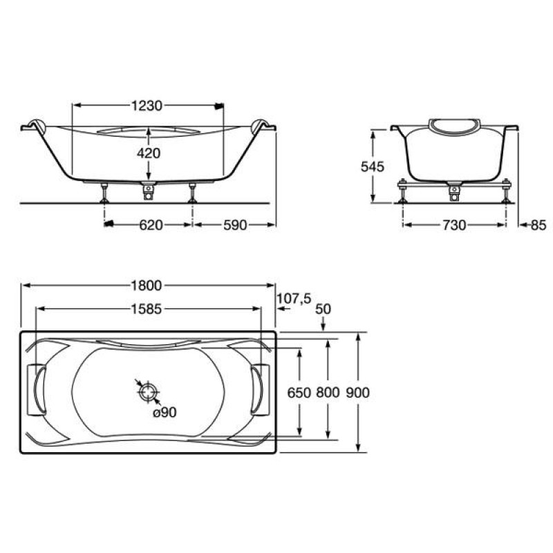 Ванна акриловая 180*90см ROCA BECOOL A248013001 с ножками ручками и подголовником