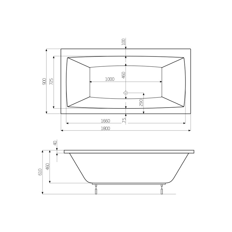 A24T082000 Ванна Vita 1800x900 + ніжки код 0375