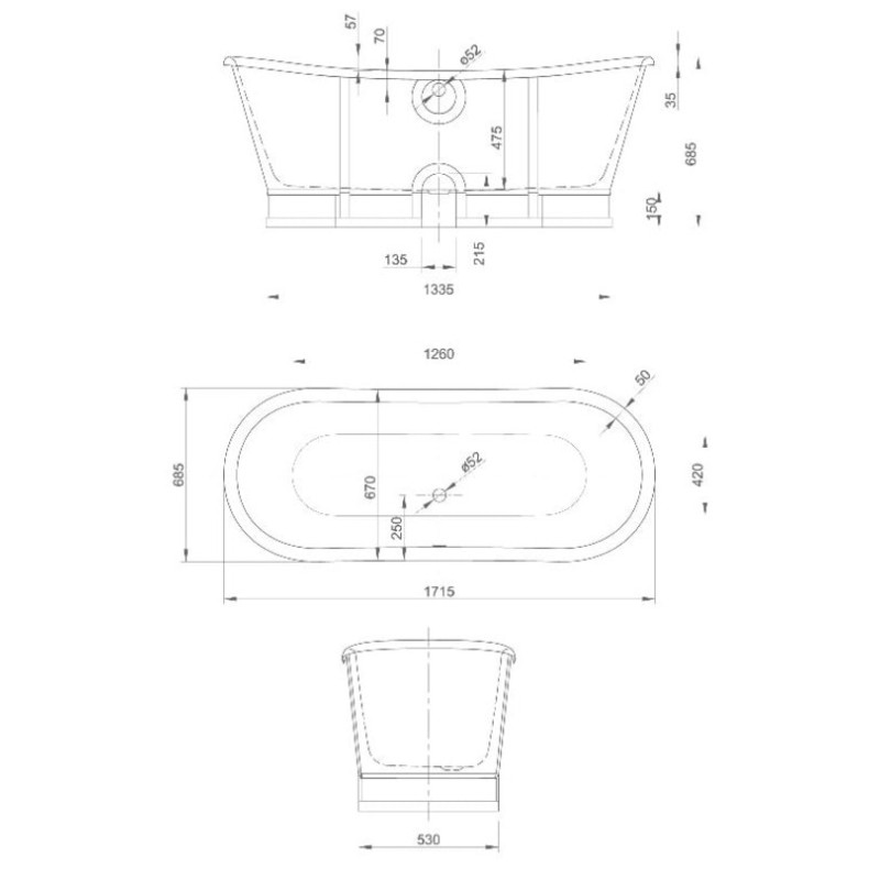 - Отдельностоящая овальная ванна