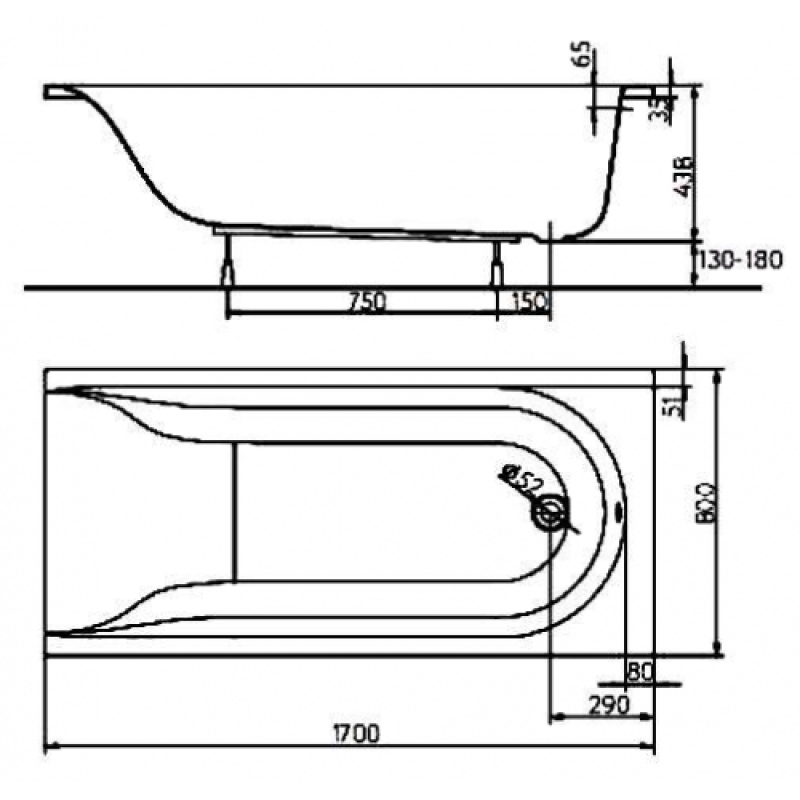 - прямоугольная ванна
