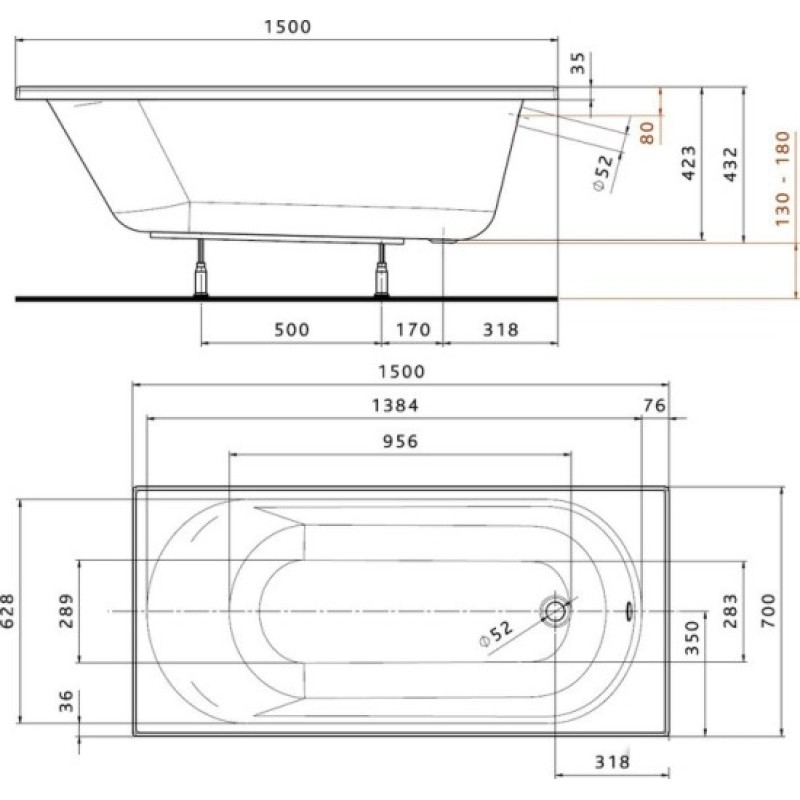 XWP135000N Ванна акрилова Opal Plus 150x70 прямокутна без ніжок код 2472