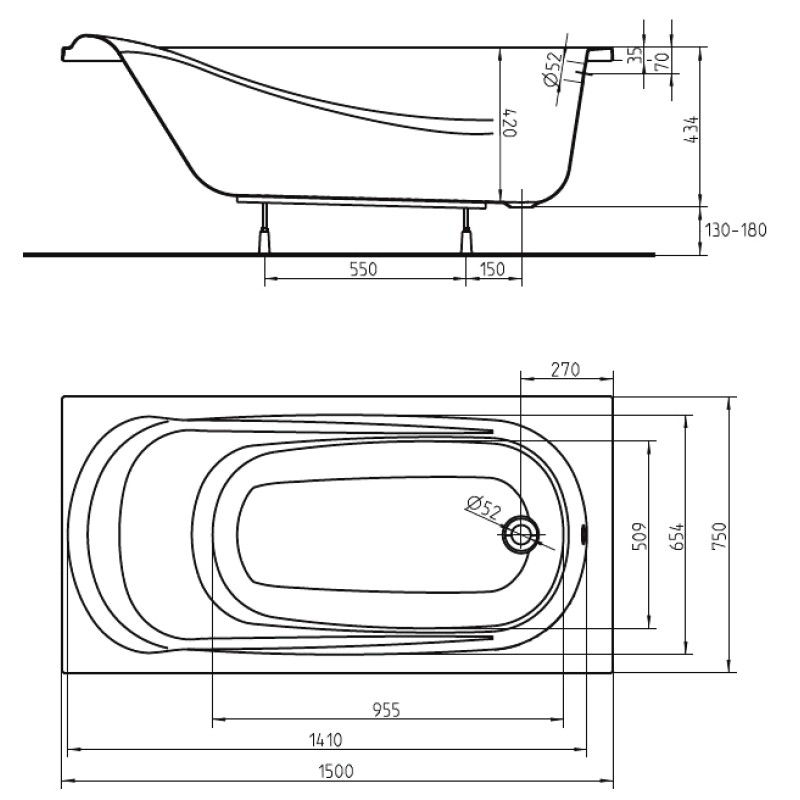 Ванна акриловая Kolo SAGA XWP3850000 150X75 см — характеристики та опис