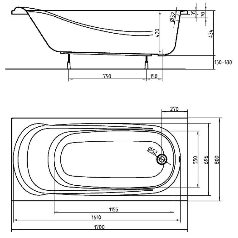 Ванна акриловая Kolo SAGA XWP3870000 170X80 см — характеристики та опис