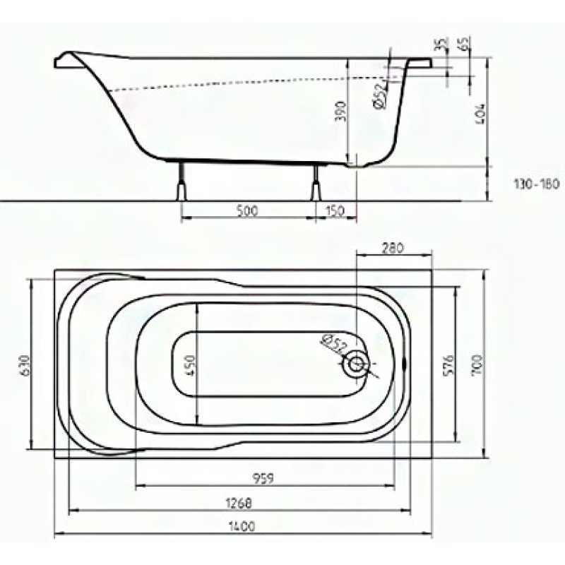 XWP354000N Ванна Sensa 140x70 прямокутна код 6172