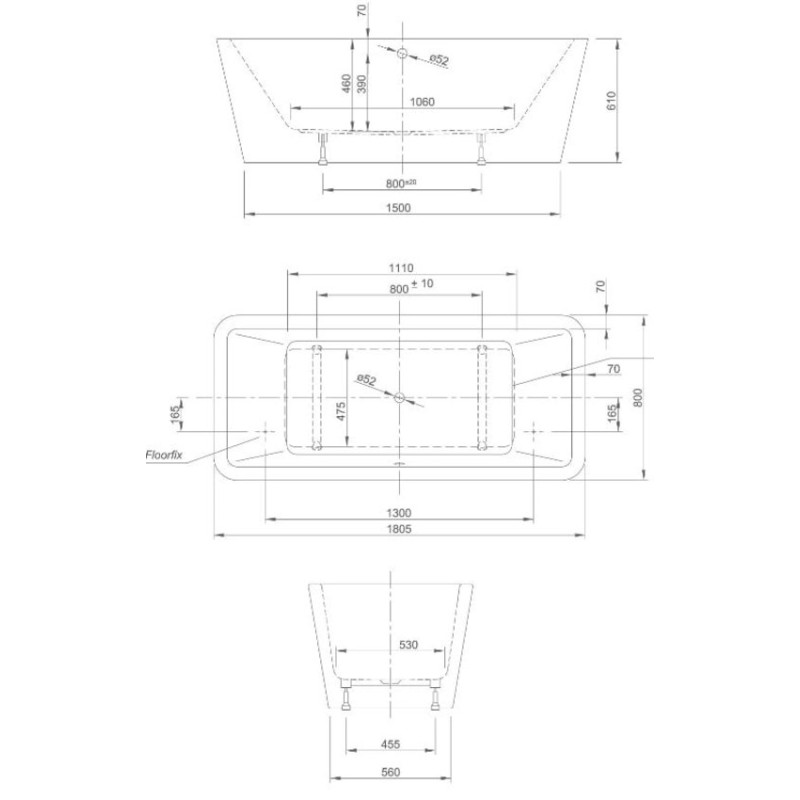- Отдельностоящая акриловая прямоугольная ванна