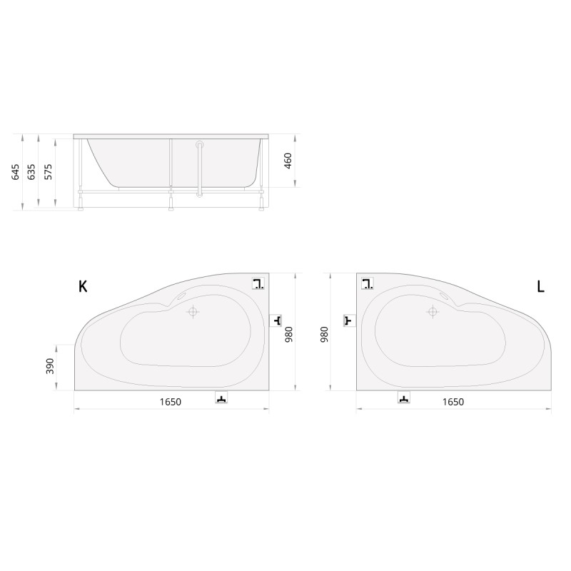 Ванна акриловая PAA Mambo K 1650x980x630 — характеристики та опис