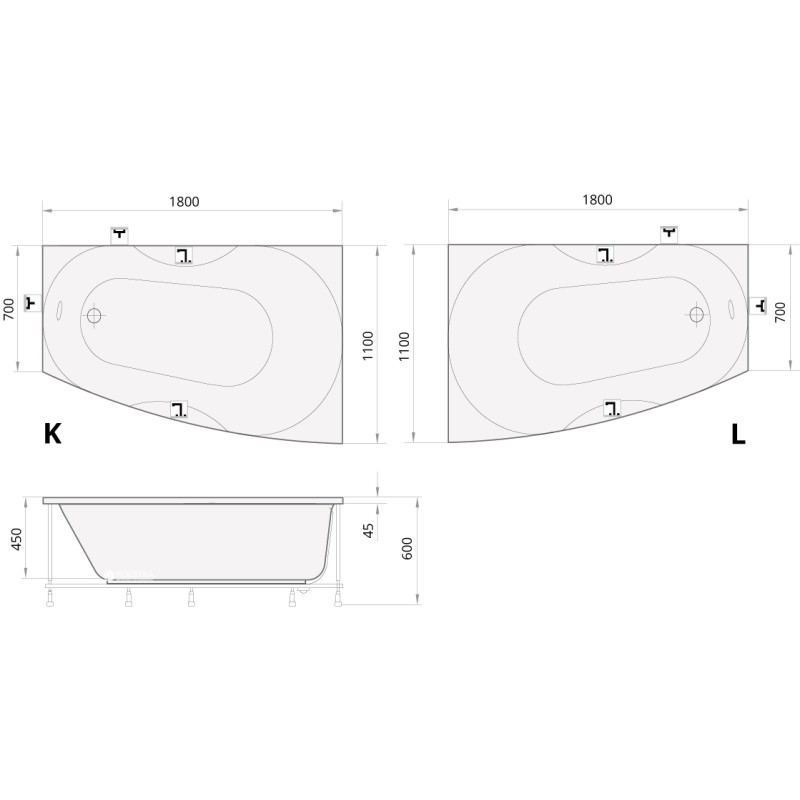 Продукция PAA сочетает в себе высокое качество и непревзойдённый стиль. Разнообразие изделий, дизайнерских решений и функциональности рассчитано на самые разные стили и возможности. Производитель сантехники PAA использует инновационный подход в разработке и производстве, благодаря чему можно оборудовать любую ванную комнату. Ванна акриловая PAA Rigonda R асимметричная модель, сочетающая комфорт и неповторимый стиль. Ванна имеет широкую спинку и сужение к сливу, её полезное пространство максимально задействовано, что доставит полный комфорт при эксплуатации. Ванна Rigonda сделана с санитарного акрила, он сохраняет тепло на продолжительное время и отвечает всем технологическим и гигиеническим нормам Преимущество акриловых ванн PAA :