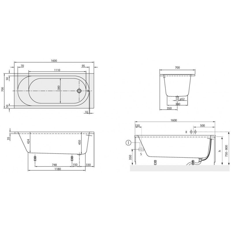 Ванна акриловая Villeroy&Boch O.NOVO UBA160CAS2V-01 — характеристики та опис