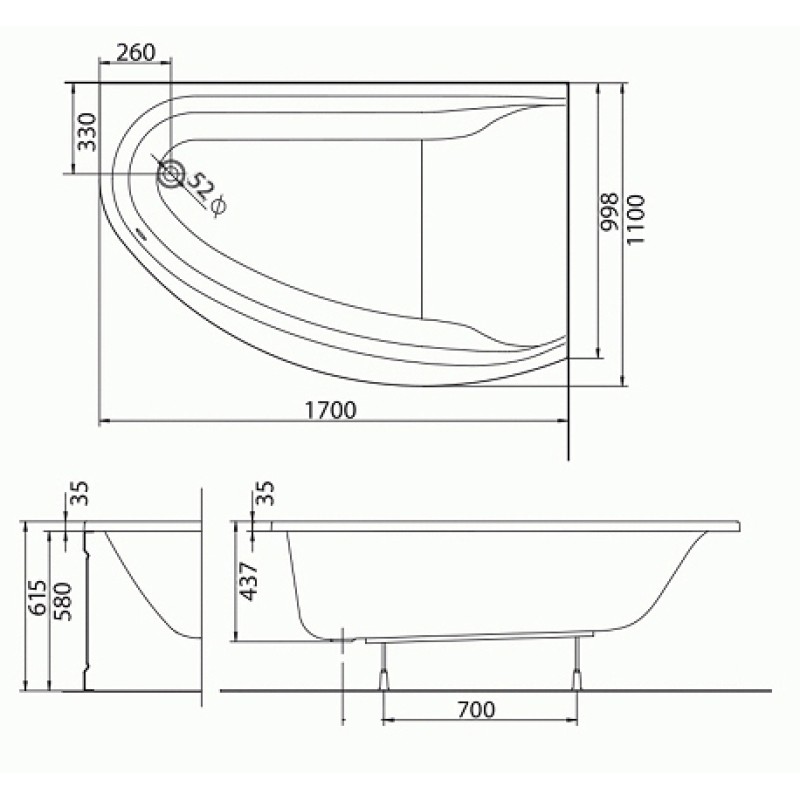 Ванна асимметричная Kolo Mirra XWA3370000 правосторонняя 170x110 с ножками