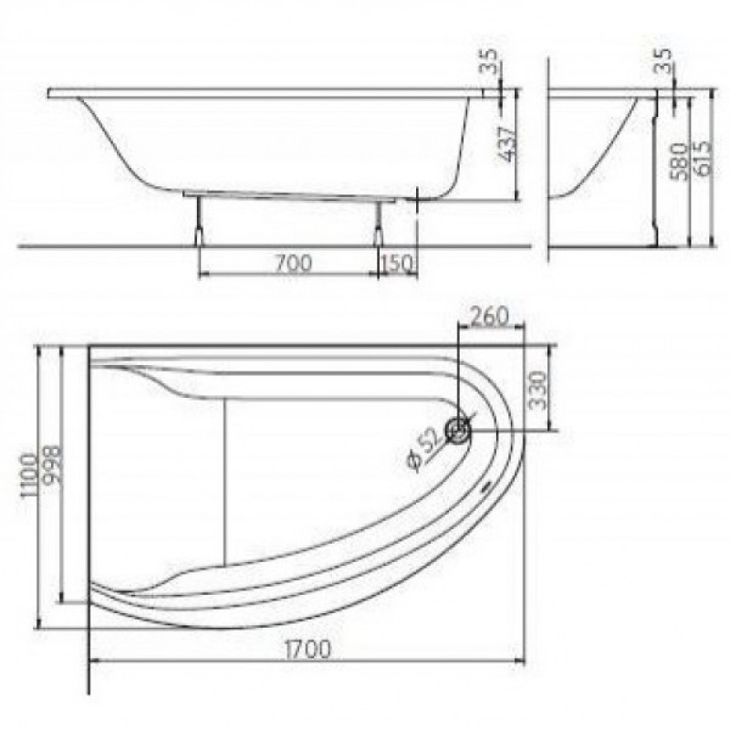 Ванна асимметричная Kolo Mirra XWA3371000 левосторонняя 170x110 с ножками