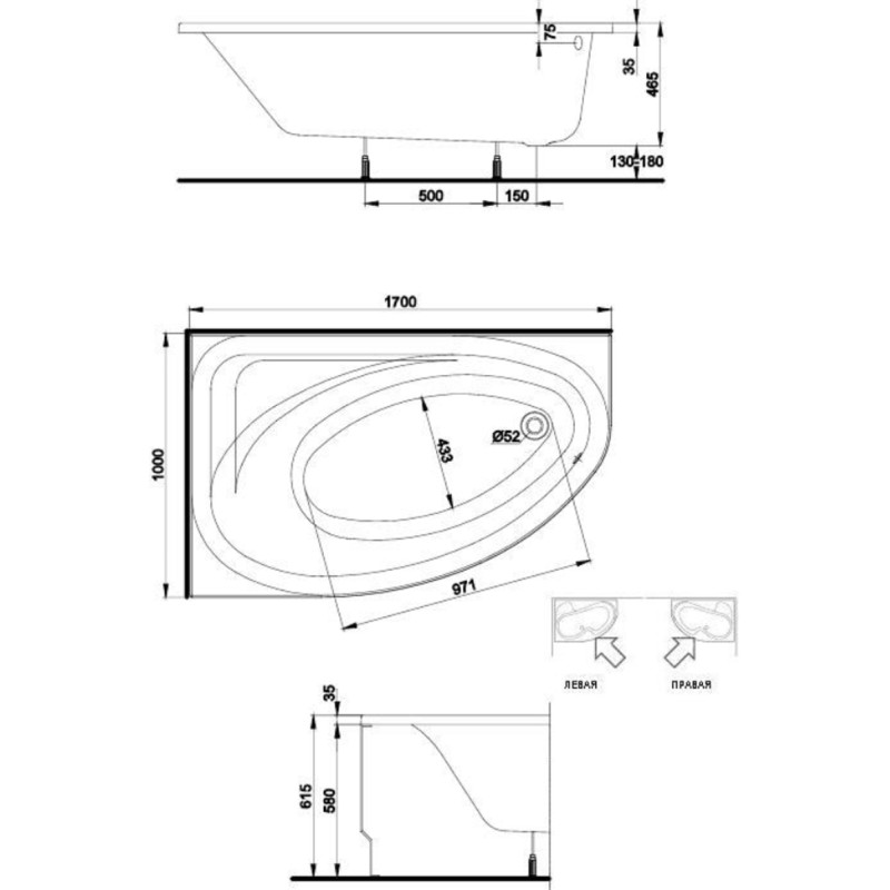 - асимметричная ванна