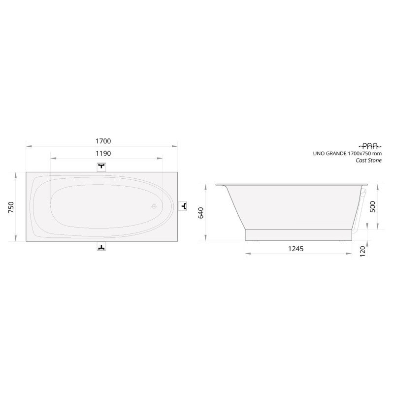 Ванна из искусственного камня PAA Uno Grande 1700x750x640