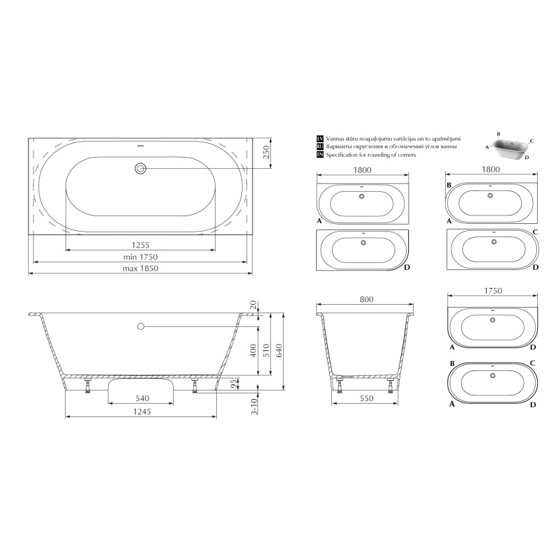 Ванна из искусственного камня PAA Vario Grande 1850/1750х800