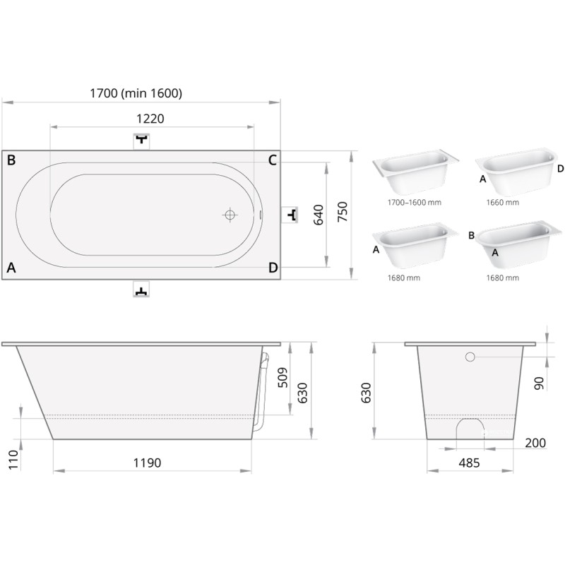 Ванна из искусственного камня PAA Vario Long 1700/1600x750