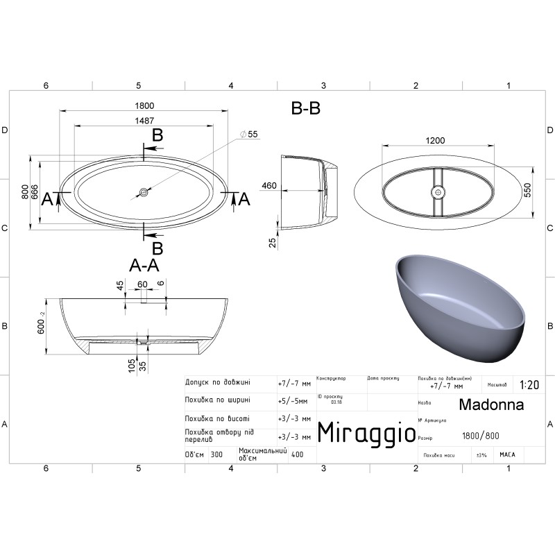 Miraggio имеет большой выбор отдельно стоящих ванн. Ванна MADONNA MATT из литого мрамора - это отдельный вид искусства. Литой мрамор — твердый и долговечный материал. Основным компонентом смеси является молотая мраморная крошка, которую смешивают с полиэфирными смолами. Ванна MADONNA MATT из литого мрамора на внешней поверхности покрывается антибактериальным гелем Gelcoat ISO NPG, который делает устойчивыми к воздействию внешних факторов.
