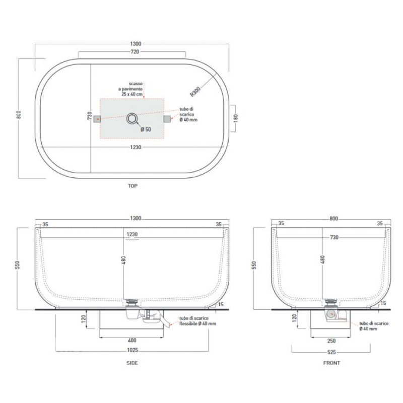 Ванна отдельно стоящая Cielo Arcadia Febe 140*80 см — характеристики та опис