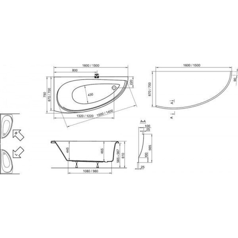 Ванна асиметрична права AVOCADO 160x75 R, RAVAK можна купити в нашому інтернет-магазині за ціною 24521.31 грн. Категорія: Сантехніка.