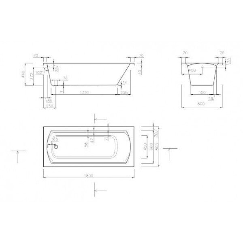 Ванна прямокутна DOMINO II 180x80, RAVAK — характеристики та опис