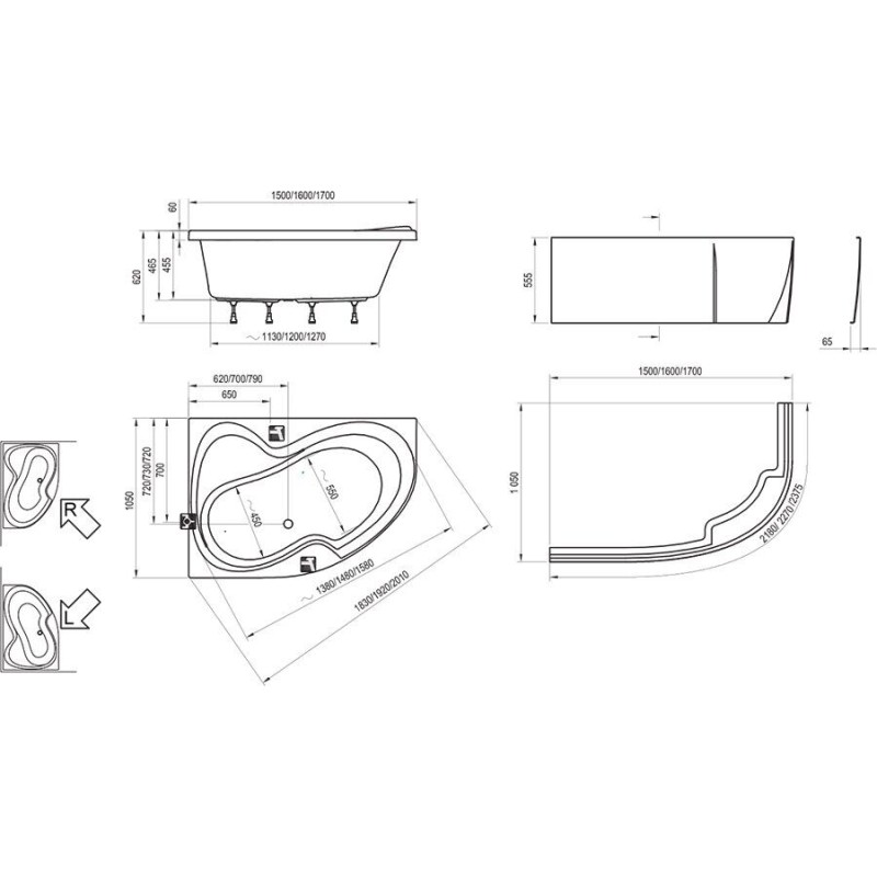 Ванна асиметрична права ROSA II 170x105, RAVAK можна купити в нашому інтернет-магазині за ціною 27936.27 грн. Категорія: Сантехніка.