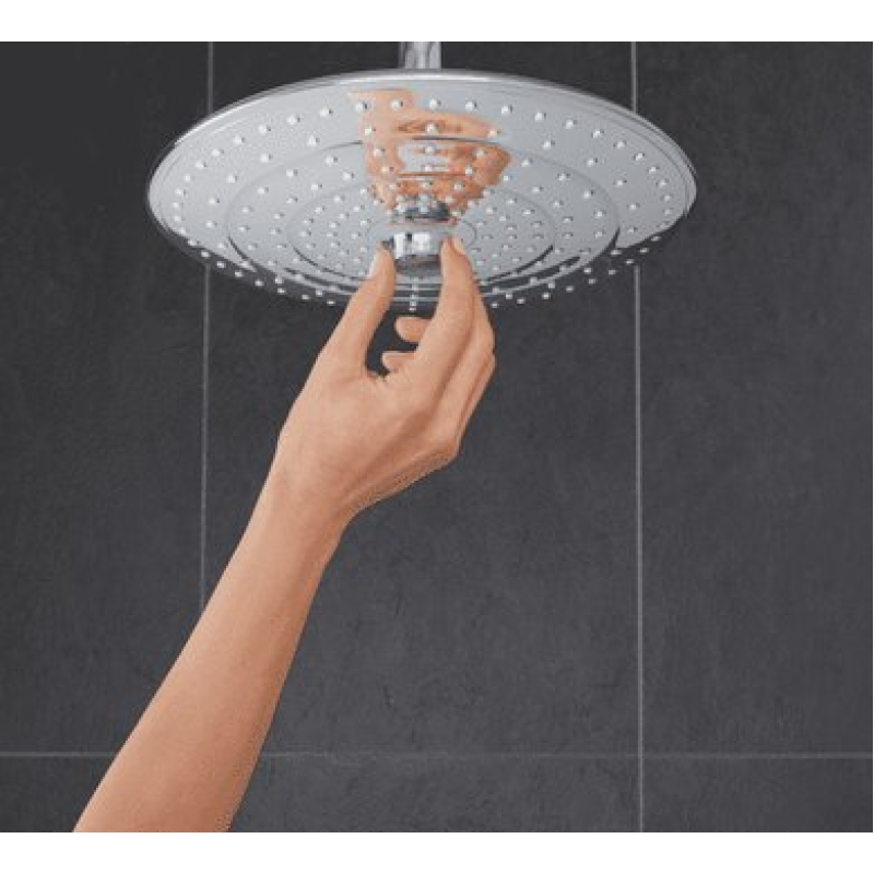 Верхний душ GROHE Euphoria 260 SmartControl - идеальное обновление вашего душа!Стиль и разнообразие! С тремя инновационными душевыми зонами, элегантный верхний душ GROHE Euphoria 260 SmartControl добавит роскошь в вашу ванную комнату. Режим Jet -мощный и сфокусированный, идеально подходит для смывания шампуня и восстанавливающего массажа шеи и головы. Режим SmartRain более широкий, энергичный, но расслабляющий, а режим Rain использует все форсунки для роскошного обволакивающего потока воды. Чтобы выбрать один из режимов струи достаточно повернуть инновационную кнопку в середине впечатляющего верхнего душа, диаметр которого составляет 260 мм. Это очень просто! С его тонким профилем и вневременным дизайном, душ чудесно выглядит в ванных комнатах разных стилей. Он оснащен передовыми технологиями GROHE. Технология GROHE EcoJoy ограничивает расход воды до 9,5 л/мин, что сохраняет водные ресурсы без ущерба для комфорта принятия душа. Чтобы принятие душа было незабываемым, технология GROHE DreamSpray обеспечивает одинаковый поток воды из каждой душевой форсунки - вне зависимости от того, какую душевую зону вы выберете. Ослепительная, устойчивая к царапинам хромовая поверхность GROHE StarLight сохранит свой блеск на долгие годы, а силиконовые форсунки можно легко очистить от известковых отложений благодаря технологии SpeedClean. Душ легко установить, а внутренний водный канал WaterGuide предотвратит нагревание поверхности душа, защищая как вашу чувствительную кожу, так и хромовую поверхность. Стильный верхний душ GROHE Euphoria 260 SmartControl - ваш источник расслабления и релаксации!