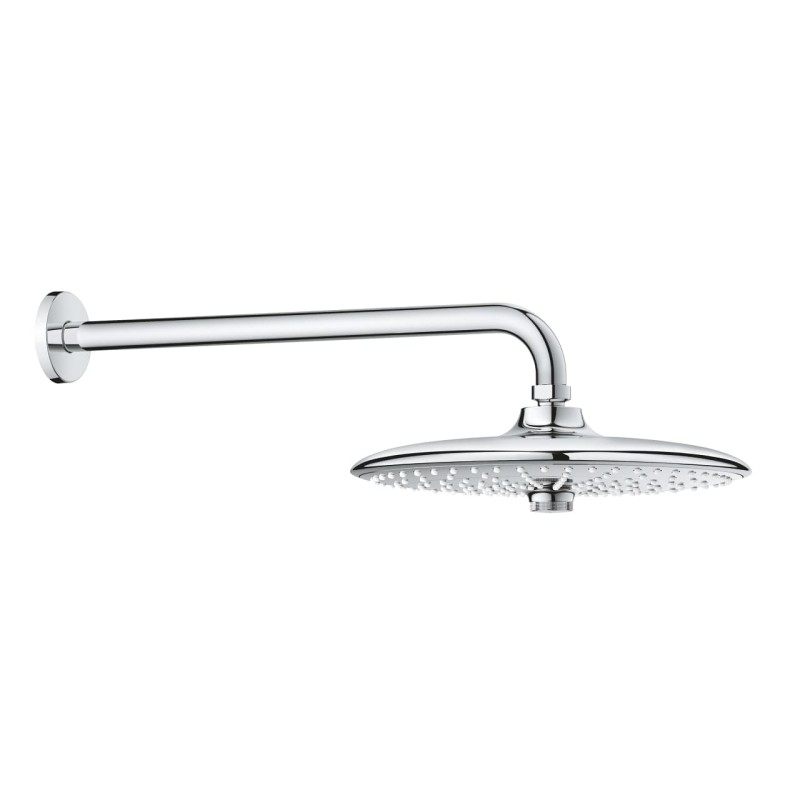 Набор верхнего душа GROHE Euphoria 260 SmartControl - идеальное обновление вашего душа!Стиль и разнообразие! С тремя инновационными душевыми зонами, элегантный набор верхнего душа GROHE Euphoria 260 SmartControl добавит роскошь в вашу ванную комнату. Режим Jet - мощный и сфокусированный, идеально подходит для смывания шампуня и восстанавливающего массажа шеи и головы. Режим SmartRain более широкий, энергичный, но расслабляющий, а режим Rain использует все форсунки для роскошного обволакивающего потока воды. Чтобы выбрать один из режимов струи достаточно повернуть инновационную кнопку в середине впечатляющего верхнего душа, диаметр которого составляет 260 мм. Это очень просто! С его тонким профилем и вневременным дизайном, душ чудесно выглядит в ванных комнатах разных стилей. Он оснащен передовыми технологиями GROHE. Чтобы принятие душа было незабываемым, технология GROHE DreamSpray обеспечивает одинаковый поток воды из каждой душевой форсунки - вне зависимости от того, какую душевую зону вы выберете. Ослепительная, устойчивая к царапинам хромовая поверхность GROHE StarLight сохранит свой блеск на долгие годы, а силиконовые форсунки можно легко очистить от известковых отложений благодаря технологии SpeedClean. В набор входит душевой кронштейн GROHE Rainshower (380 мм). Набор легко установить, а внутренний водный канал WaterGuide предотвратит нагревание поверхности душа, защищая как вашу чувствительную кожу, так и хромовую поверхность. Стильный верхний душ GROHE Euphoria 260 SmartControl - ваш источник расслабления и релаксации!