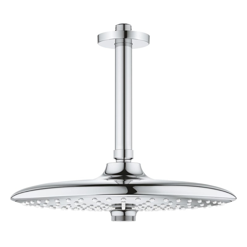 Набор верхнего душа GROHE Euphoria 260 SmartControl - идеальное обновление вашего душа!Стиль и разнообразие! С тремя инновационными душевыми зонами, элегантный набор верхнего душа GROHE Euphoria 260 SmartControl добавит роскошь в вашу ванную комнату. Режим Jet - мощный и сфокусированный, идеально подходит для смывания шампуня и восстанавливающего массажа шеи и головы. Режим SmartRain более широкий, энергичный, но расслабляющий, а режим Rain использует все форсунки для роскошного обволакивающего потока воды. Чтобы выбрать один из режимов струи достаточно повернуть инновационную кнопку в середине впечатляющего верхнего душа, диаметр которого составляет 260 мм. Это очень просто! С его тонким профилем и вневременным дизайном, душ чудесно выглядит в ванных комнатах разных стилей. Он оснащен передовыми технологиями GROHE. Чтобы принятие душа было незабываемым, технология GROHE DreamSpray обеспечивает одинаковый поток воды из каждой душевой форсунки - вне зависимости от того, какую душевую зону вы выберете. Ослепительная, устойчивая к царапинам хромовая поверхность GROHE StarLight сохранит свой блеск на долгие годы, а силиконовые форсунки можно легко очистить от известковых отложений благодаря технологии SpeedClean. В набор входит душевой кронштейн GROHE Rainshower (142 мм). Набор легко установить, а внутренний водный канал WaterGuide предотвратит нагревание поверхности душа, защищая как вашу чувствительную кожу, так и хромовую поверхность. Стильный верхний душ GROHE Euphoria 260 SmartControl - ваш источник расслабления и релаксации!