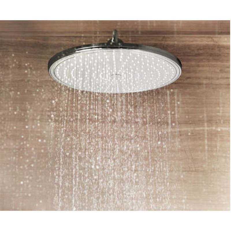 Верхний душ Grohe Rainshower 400 - это классический дизайн, внушительный диаметр лейки и универсальный режим струи. Тип струи «дождь» признан самым популярным среди покупателей продукции Grohe. Широкая площадь водного потока, который подаётся мягкими струями, охватывает всё тело, «обволакивает» и создаёт ощущение летнего дождя. При небольшом напоре такой душ расслабляет, а увеличение напора воды способствует бодрящему эффекту.