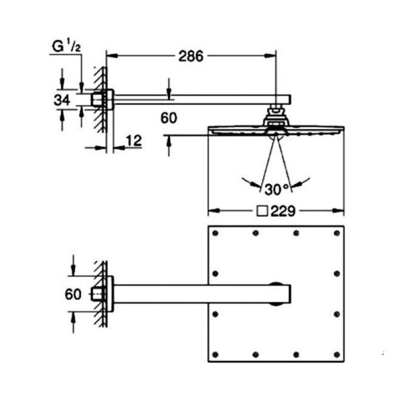 Верхний душ GROHE RAINSHOWE ALLURE 230 с душевым кронштейном.Характеристики: Назначение: Верхний душФорма: КвадратнаяСпособ монтажа: НастенныйМатериал: ЛатуньЦвет: ХромВиды струи: 1 режимПодвод: G 1/2Размер: Ø 229х229...