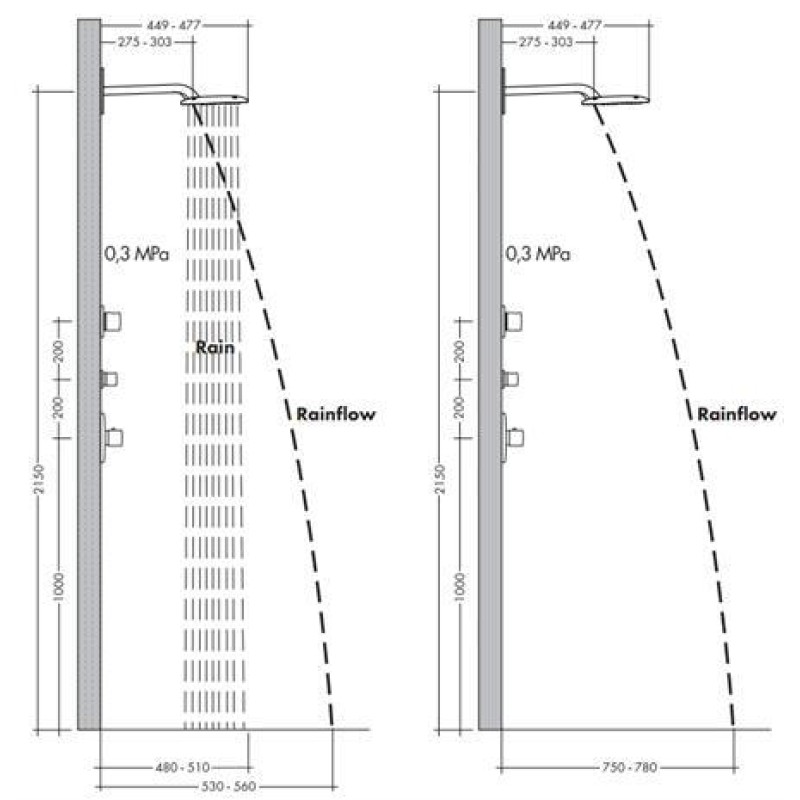 - расход воды для струи RainAir (при 3 бар): 21 л/мин