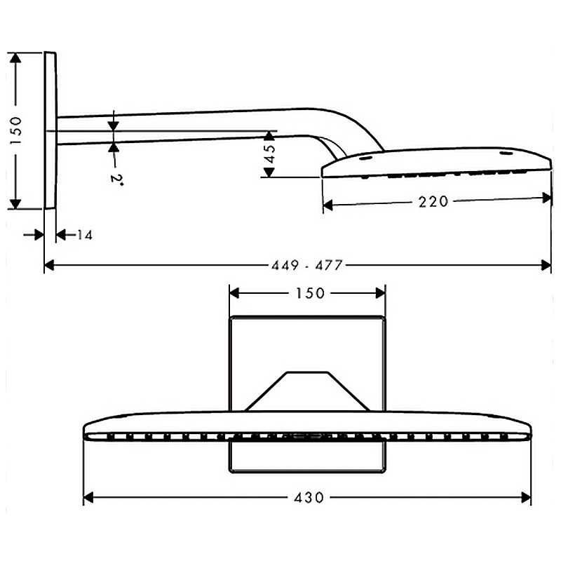 размер душевого диска: 430 x 220 ммдлина держателя для душа: 380 ммтип струи: RainAir, ливневая струярасход воды для струи RainAir (при 3 бар): 21 л/минрасход воды для струи Mix (при 3 бар): 33 л/минрасход воды для ливне...