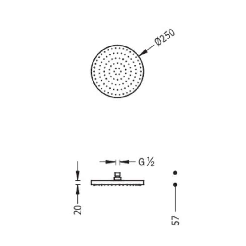Схема с размерами верхнего душа Tres Showers Head (13413726)